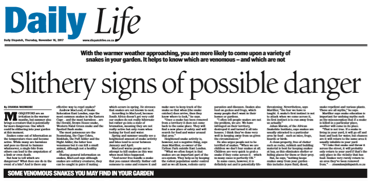 Dispatch Live: Eastern Cape Researchers Discover New Snake Species. June 2020. Newspaper.